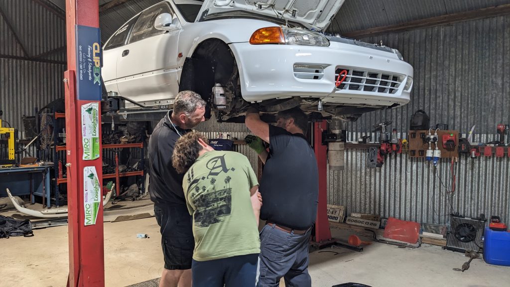 Cork Forest Rally, here we come…. admin, August 18, 2023September 26, 2023 Ya it’s that time of the year, time for the local rally. We are off competing on Cork Motor Club’s “Grand Prix on gravel”, the Jim Walsh Cork Forest Rally. Bitzy is back out after her bale bashing escapades and has been treated to a splash of paint. Below is a teaser of the new scheme. The rest of the gang will be there holding the fort or getting in the way in some capacity. We were all attempting to help before hand. Sure it took 4 of us to tighten one bolt. Person 1 was on the tools. Person 2 was holding tools. Person 3 needed to comment and person 4 to take pictures. So, all jobs need 4 people. And yes, we dropped the bolt into the old oil that was sitting in the catch can on the floor. Anyway, come and enjoy the madness on Sunday. We are only there through the support of O’Donovan Engineering and PI Cycles. Cars Macca Rallies