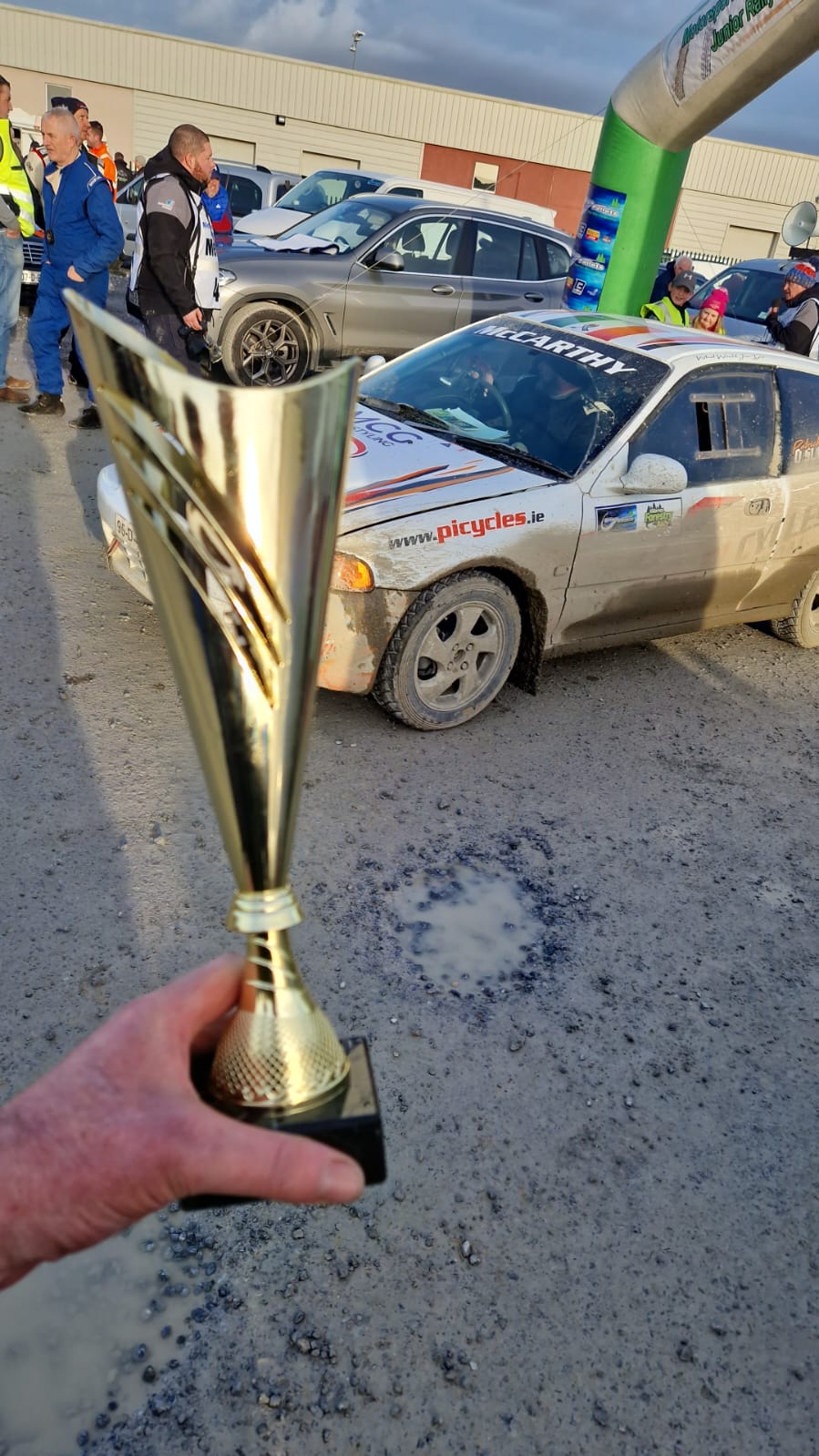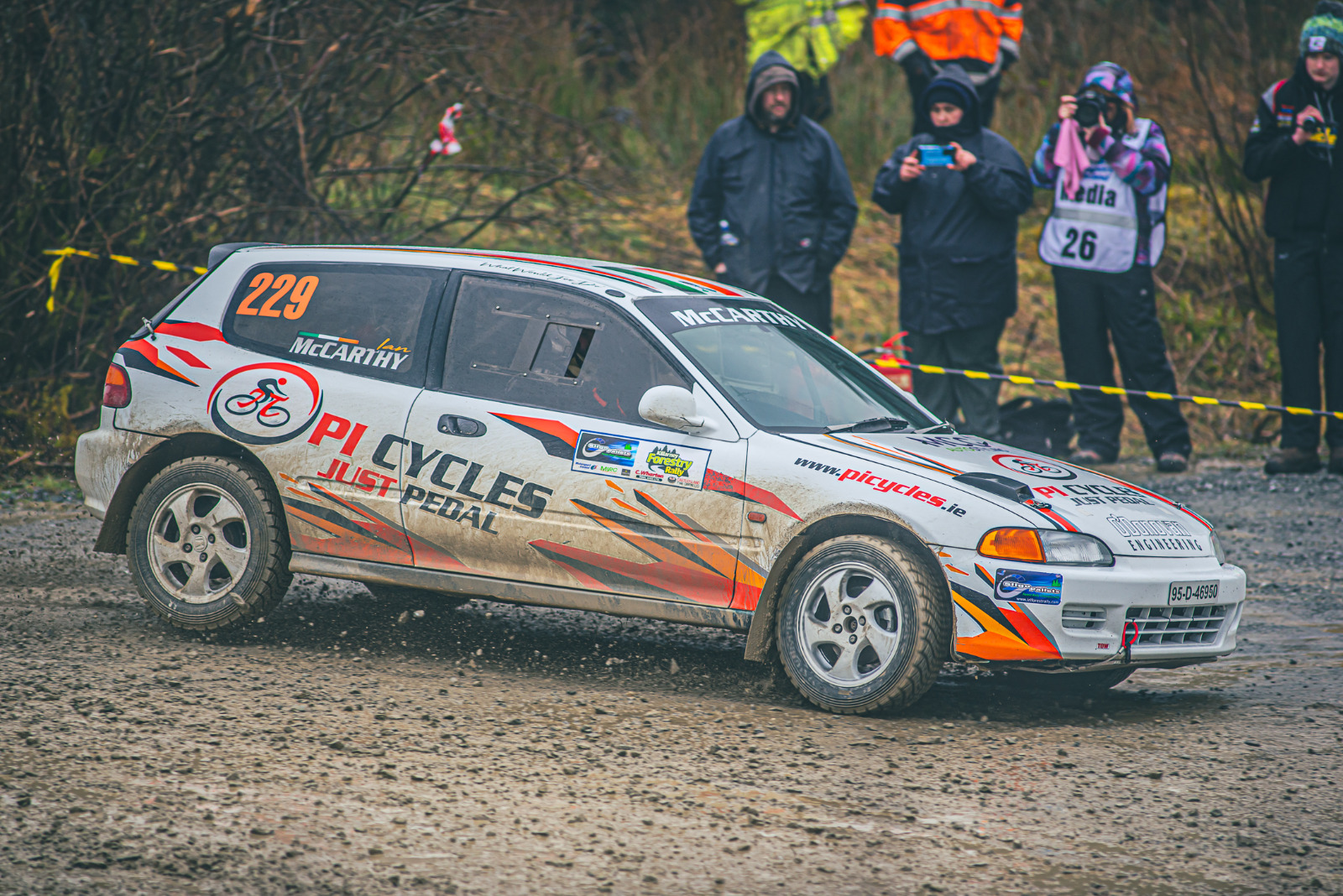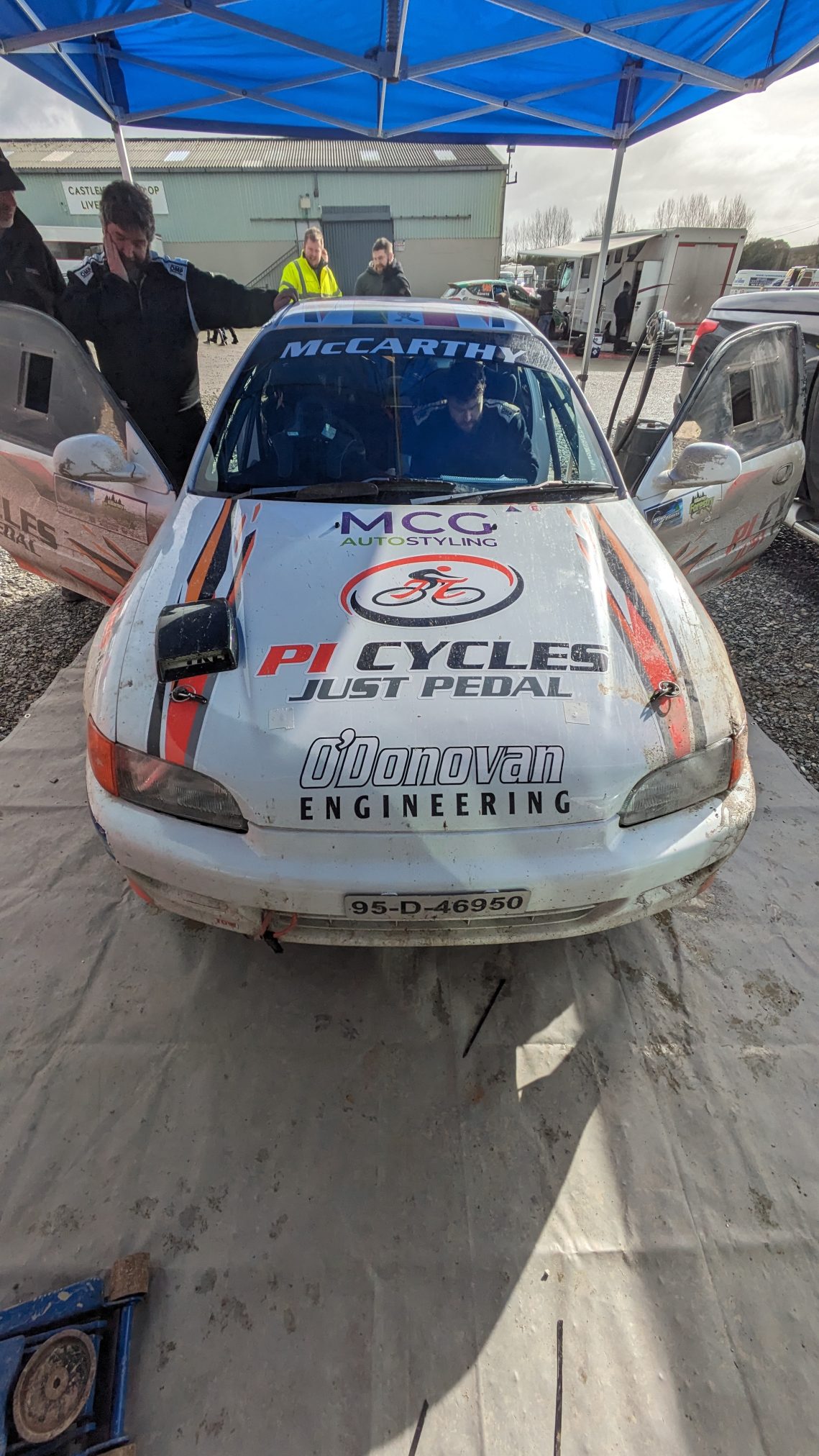 Right, how to explain this….. admin, February 20, 2024 We are home from Killarney Forest Rally with a First in Class 11F and the Sligo Pallets “Drive of the day” award. The morning didn’t look like that would happen at all….. The day got better when Colin Neligan and Eoin O’Donoghue grabbed third in class 11F. That bloody Fiesta is getting quick….. Right, where to start….. I got a message at about 6 in the morning (while cramming Cork Flakes into myself) that the day was over. There was a “technical issue” with a race suit and without a fully functional race suit, no race. After a series of phone calls and a dash here and there, a replacement was found (along with the details of someone’s tab with EARS in Mallow). Right rally on….. During the day, there was some issues with a wire making its way out of the ECU which required someone to adopt an unusual position in the car in service. Yep, that’s Daniel upside down in Patrick’s seat in an attempt to reach the ECU. Damien seems to have sent the brother in law down “for a look”. He was far too nice to tell us to bugger off. Result, we roped him in to help as he seems to understand technical things like what a spanner actually does… Oh there were other issues such as a fierce banging in the back (loose jack!), electrical relays going missing, VTEC working whenever it wants (mainly on left hand bends), 2 inches of mud EVERYWHERE! and Paprika Pringles (they are officially weird)…. Ya, we are still pinching ourselves that they left us loose with the trophies and we actually won the class….. Special thanks to PI Cycles, MCG Auto Styling and O’Donovan Engineering for their help in this mad escapade…. Right. Roll on Carrig and the next piece of madness for Bitzy in the woods…… Two action shots to finish from CianDon to finish (even though Bitzy is slightly off line) Macca Rallies