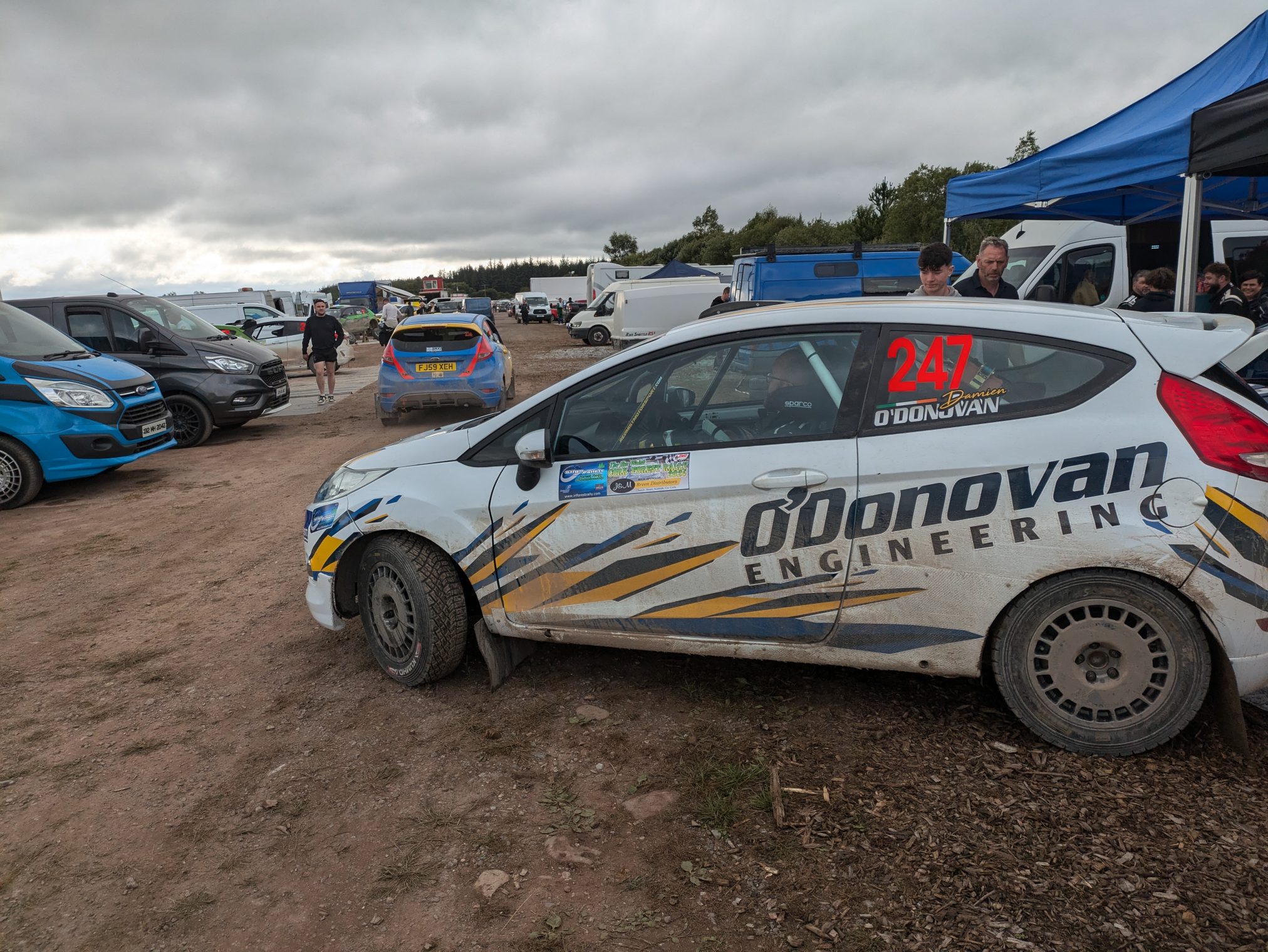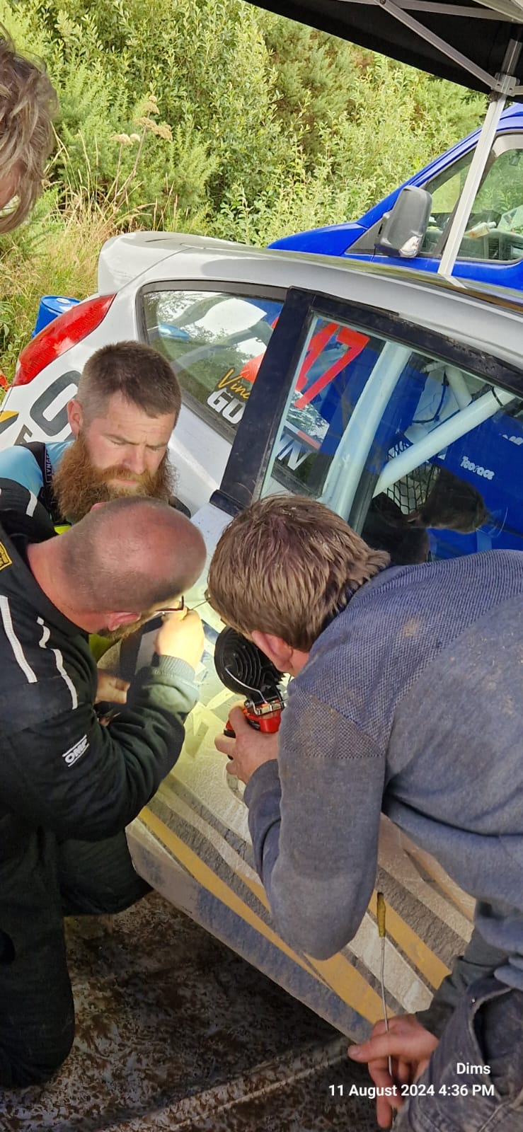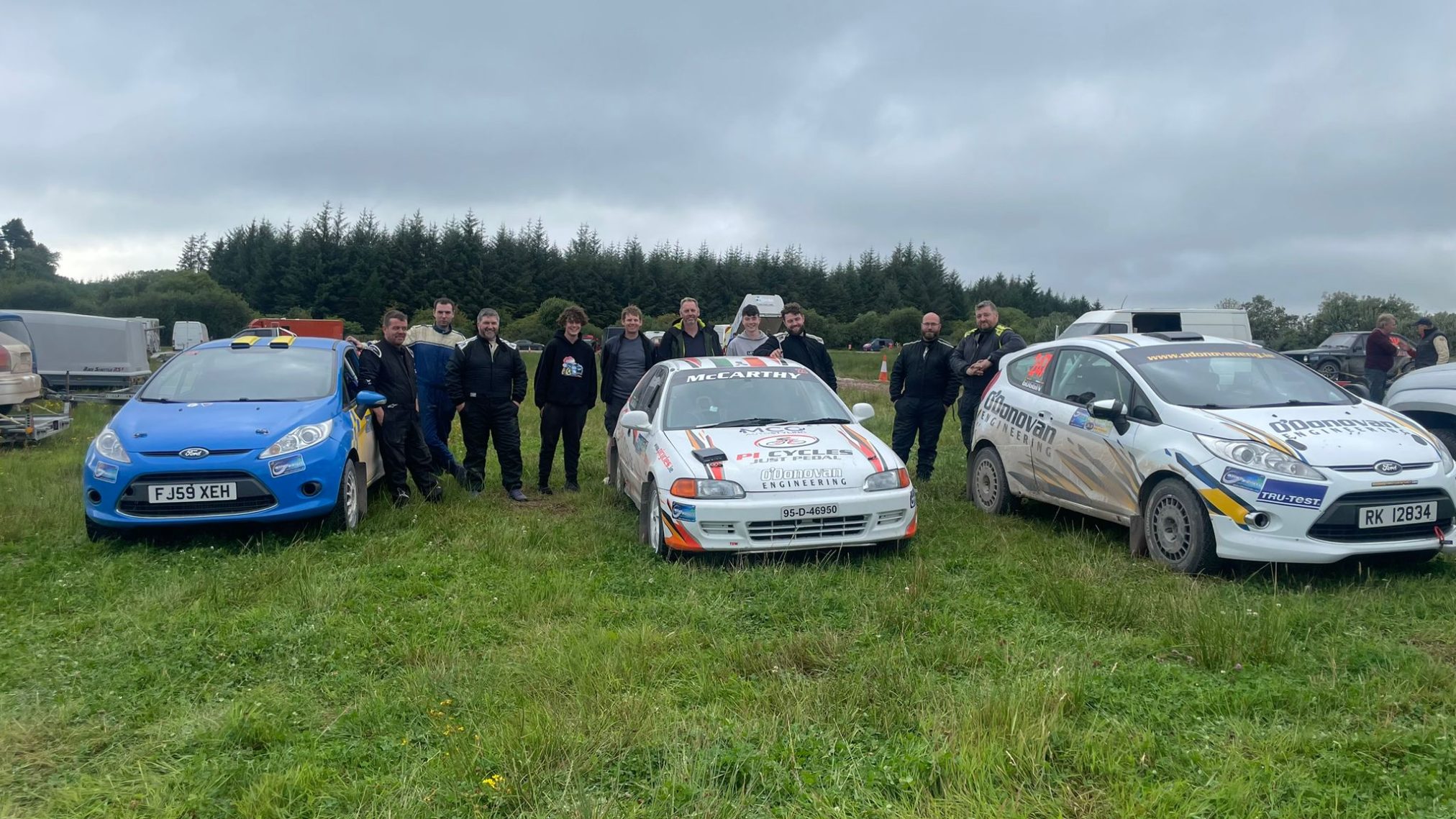 Another very successful day in the woods…. admin, August 11, 2024August 11, 2024 We are home from the Cork Motor Club’s Jim Walsh Cork Forest Rally with more silverware. Also, it was a very successful first run for Damien’s new Fiesta. The gang of people hanging onto the spanners were Joe, Mike and Daniel providing actual technical ability. They were ably assisted by Jason (who provided plenty tae), Scully, Ryan and Charlie. Darragh was on work placement and was learning the correct way of holding a spanner. I was on window duties and generally got in the way. Annmarie, Anna and Fiona arrived to provide glamour and proceeded to take all the bottles of ethanol based beverages the webmaster provided…. Ian as usual finished first in class (I just jinxed it now) in 11F while Colin and Damien had close battle all day. Colin just missed out on third in class by about 2 seconds. Damien, as can be seen above, was chasing Colin all day and came off second best in that little sporting battle. As for how the vehicles performed, Vincy can sum it up in a picture. Colin ran faultlessly all day. It was boringly reliable, just needing fuel and a window clean all day. Damien’s electric window switch decided to sulk for a few moments but decided to fix itself (probably scared of Daniel and the multimeter). A door handle also made a break for freedom but it was foiled…. Macca had a bolt or something work loose in the engine mounts. I think it was more of a dramatic break for the border compared to the door handle by shearing off completely. It was foiled by a drill, WD-40 and a bolt but it put up a fight. Bitzy also had a bung in the floor pop off and made Macca’s shoes dirty. It had to be plugged…. We’ll no doubt have more stories to share once we get some rest. We’ll fire some of the stories and videos up here in the upcoming days. Special thanks to O’Donovan Engineering https://www.odonovaneng.ie, PI Cycles https://www.picycles.ie/ and Cork Motor Club for a wonderful day out….. Cars Damien Macca Rallies