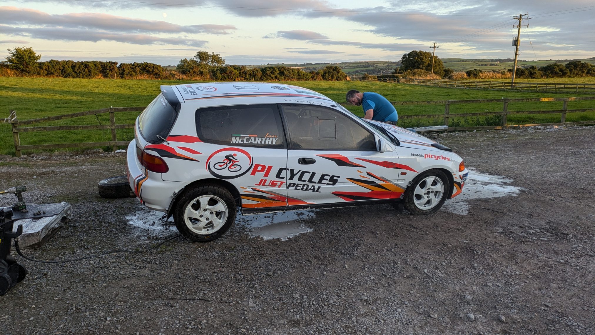 A tale of a sticker….. admin, August 18, 2024August 18, 2024 Well, let me tell ya about the new Red Mist door bar sticker that was launched at Cork Forest Rally and it’s design. It’s a tale of intrigue, beguile cunning and someone just deciding everyone else is wrong… Well, we decided to have the world debut of the new Red Mist Door Bar sticker at Cork Forest Rally (Damien’s new Fiesta was second fiddle). Naturally the WhatsApp was running hot for WEEKS with us debating the design, colours, fonts, etc. Eventually, the design was fixed after a massive debate on the shade of red to use, font, size and how blue the black background would be. Damien “kindly” offered to get them when getting the graphics for the Fiesta. Naturally, Damien just decided that the rest of us were wrong and completely re-designed them…. Typical and in an act of defiance as to their original purpose, one managed to make it onto the rear end (oh easy vicar!) of the Webmaster’s car (web idiot more like it!). Anyway, in other news, ONE CAR managed to get washed after Cork at least…. Anyway, roll on the international adventure when we venture north in a few weeks…. Cars Rallies