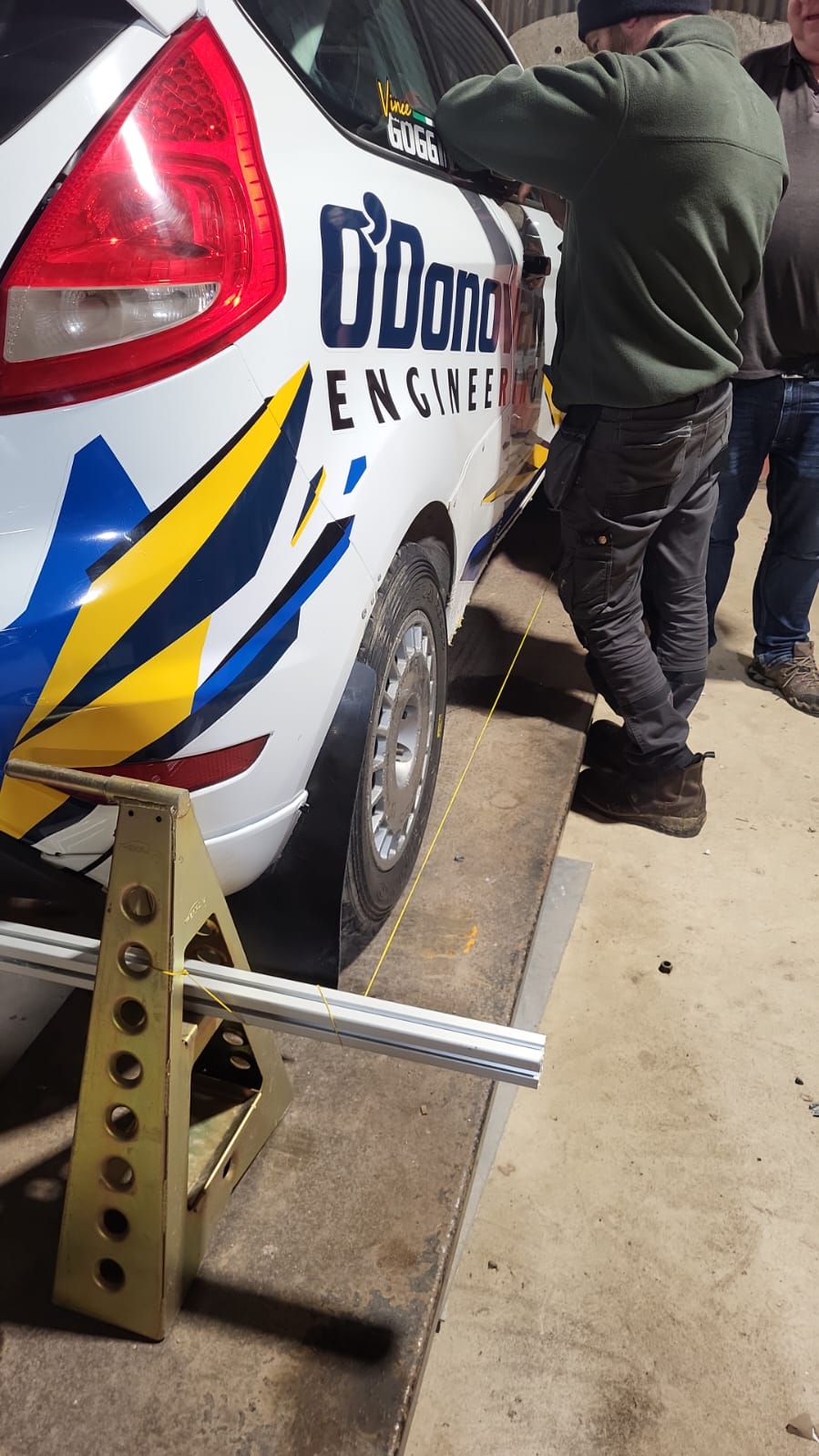 Ah we should have paid more attention in school….. admin, May 9, 2025May 9, 2025 In not surprising news, we learned last night that we should have paid more attention in school. Damien, for some ungodly reason, decided to “check the tracking”. That resulted in Daniel measuring things, muttering numbers and doing maths on the back of a page of pacenotes. We heard the mutter of trigonometry, angles, degrees and millimetres. He seemed to understand. The rest of us didnt…… I must confess that when I saw the string, I thought it was a bit low to have a clothes line but I decided to keep my trap shut. I didn’t want to confirm my stupidity by opening it. See, it is looks like a clothes line for a mouse…… Anyway, there’s a bit of a rally on Sunday so the “spit’n’polish” was broken out for the Fiesta. It even got the extra furry buffing cloths that are too good for Bitzy. So, we’re off to Tipp Forest Rally on Sunday where Damien & Vincy are car 247, or something like that. Myself and Macca can’t make it so they’ll have a better chance of surviving the day. Coverage will be a bit “spotty” so we’ll have some updates even less than usual for us. The Fiesta is in fine fettle, as always. Wave when we pass! Cars Damien Rallies