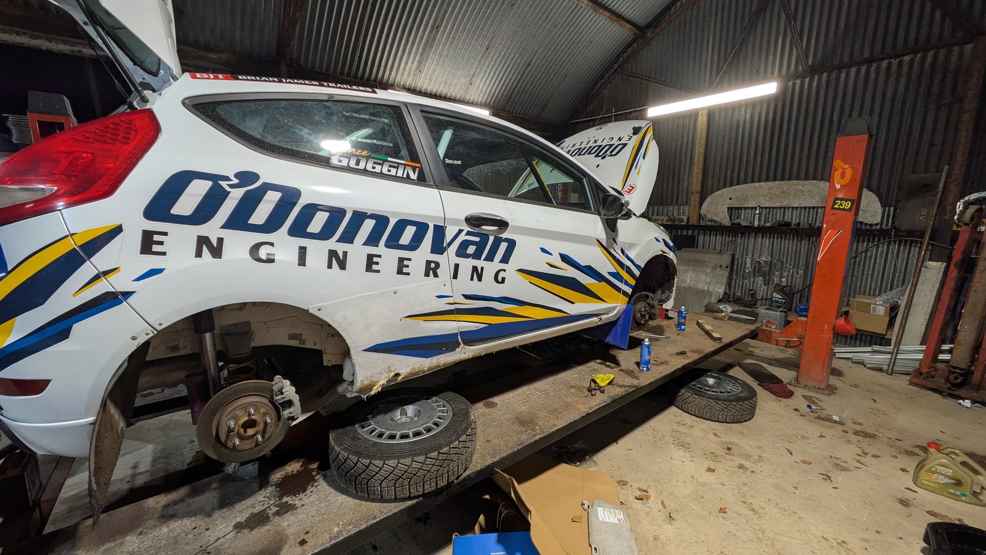 Things actually move in the shed…. admin, December 19, 2025December 19, 2025 We cam confirm that the rumour that nothing moves in the Red Mist shed isn’t true. The reason for saying this is that the Fiesta went from one side of the shed and onto the ramp. As for the reason, would you believe that the car is due out shortly. Contrary to rumours that we do nothing but talk about competing, Damien and Vincy are competing in the Cork Motor Club’s Boggeragh sprint. We (the royal we – more like Damien on his own and we watched) did a load of work. It was fired up on the ramp, we all pointed and went “ya that’s looking alright, I think”. Luckily, we found evidence of Joe Shinnors actually checking things and using something we are lacking (a fancy red paint pen) Our “mechanical ability” was seen when we tried to bleed the brakes but “somehow” the pipe came off the bleed nipple. So, normal (dis)service has resumed…. Cars Damien Rallies